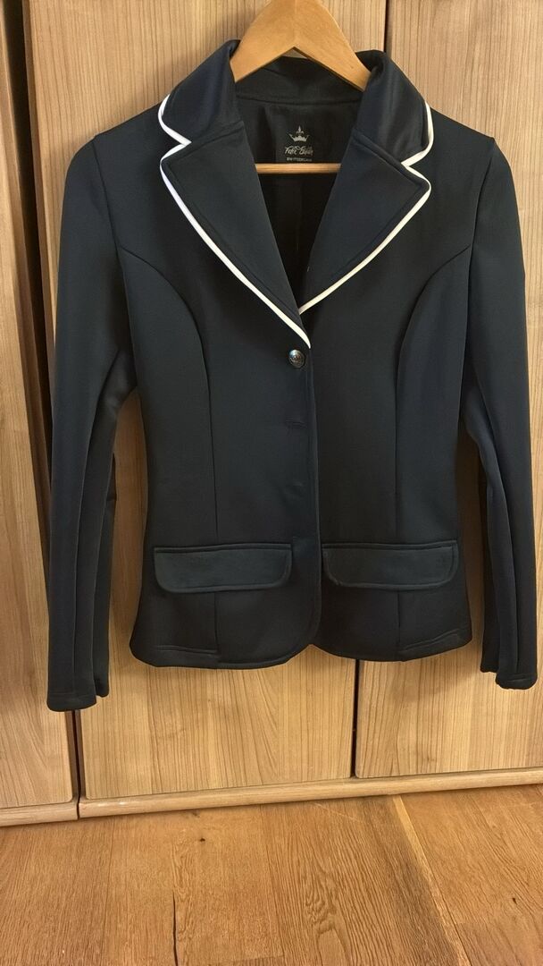 Turniersakko schwarz mit weißen Paspeln Größe xs