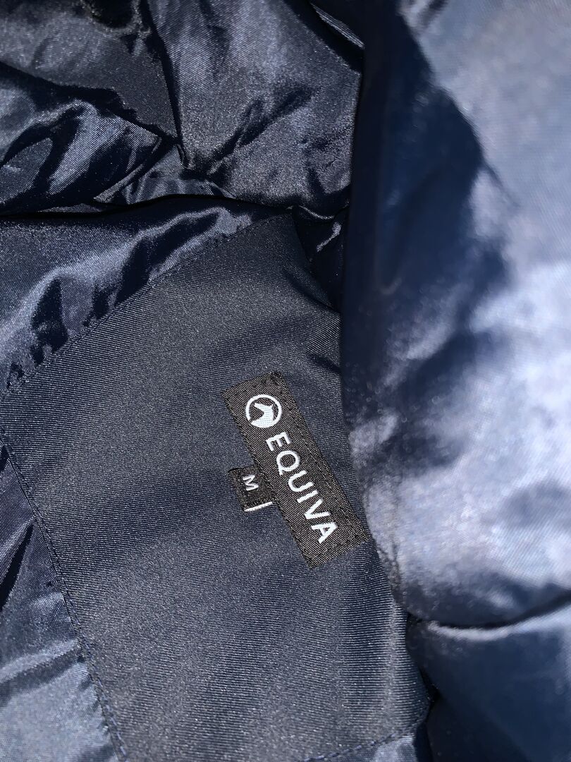Jacka från Equiva - Jag säljer en jacka. Jackan har fördelen att man kan öppna den baktill så att man kan sitta bekvämt på hästen och rida. Jackans midjeband stör inte detta. Jackan har en tvåvägsdragkedja och har flera fickor. Ytterfickorna är knäppta och ganska djupa så att inget kan falla ut när man rider. Den har också ett elastiskt innerband så att passformen enkelt kan justeras efter kroppen. Den har en huva och är vind- och vattentät.