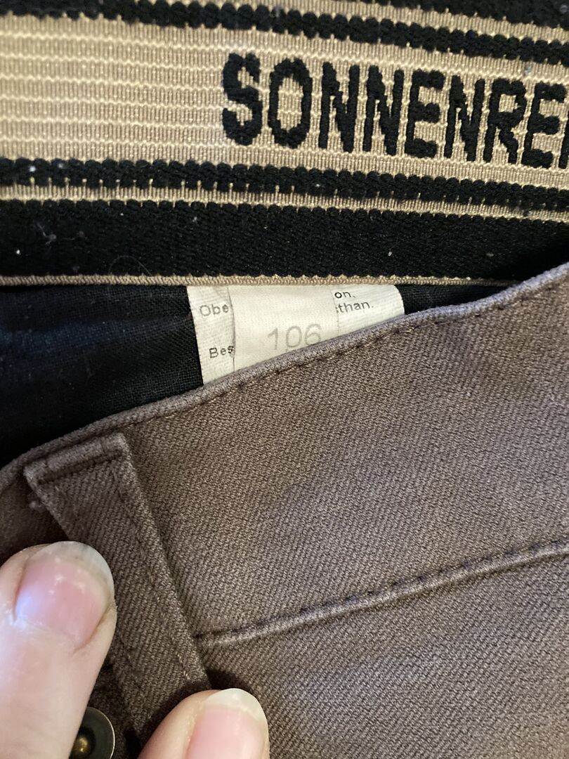 Jodhpur full sits byxor storlek 106 - Mörkbeige Jodhpur byxor med full sits i storlek 106. Två bakfickor med tryckknappar på baksidan, två slitsade fickor framtill. Mycket bra skick