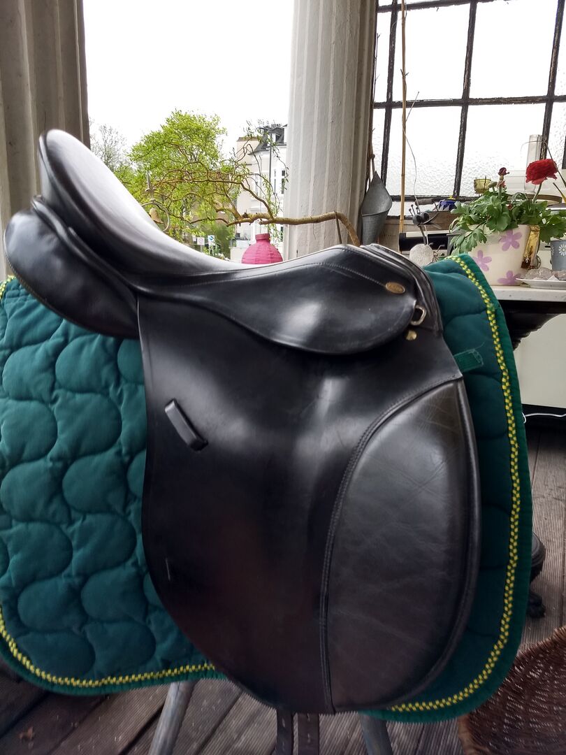 Eftersom jag bara har en häst på grund av min ålder och den här sadeln inte längre kommer att användas, vill jag inte att den ska hänga i vår hall längre. Det är därför jag nu erbjuder den här.