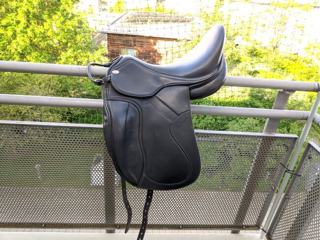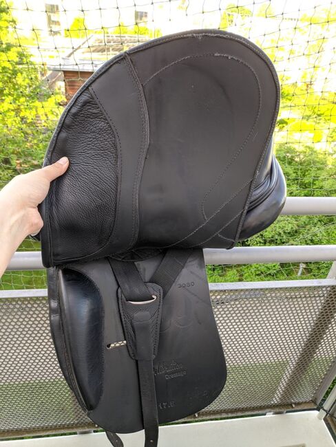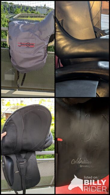 Jag erbjuder en mycket välskött Jorge Canaves Celebration Dressage-sadel i storlek 17,5 tum till salu. Jag köpte sadeln när jag köpte min häst.