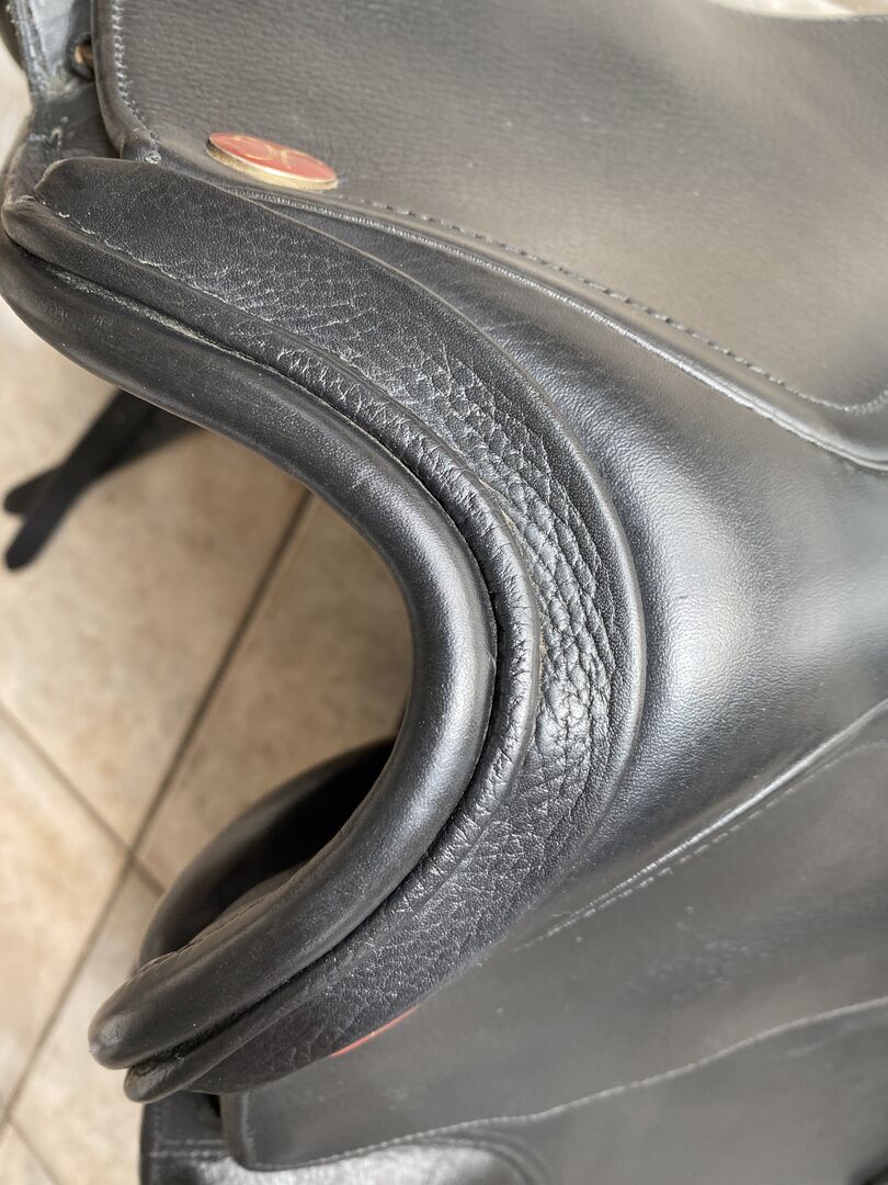 Jorge Canaves dressyr sadel mycket bra skick 31/17,5 - Jag säljer här en knappt använd men äldre dressyrsadel av Jorge Canaves (2004). Sadeln erbjuder: Medeldjupt säte Bekväm fingerborg som stabiliserar utan att snäva in. Knappt några tecken på användning (behöver köras in) Gångremmar i mycket gott skick Steglös justering av huvudstallet Spinal frihet