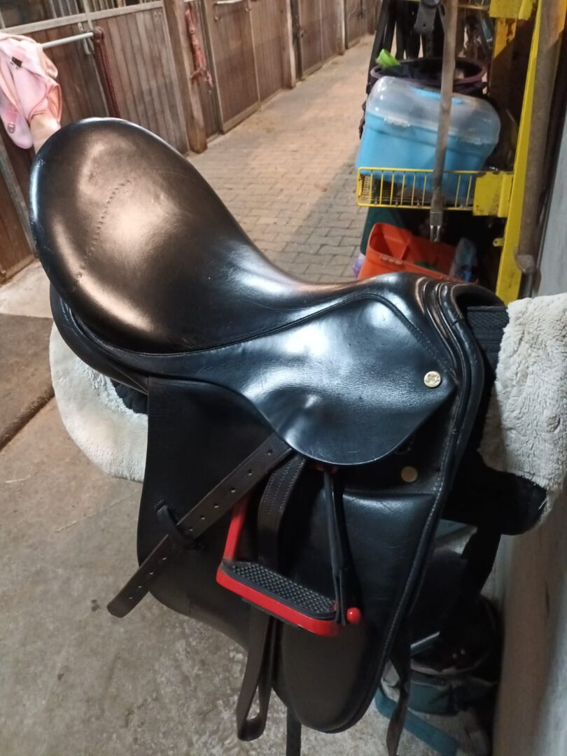 Jorge Canaves dressyrsadel 17,5 tum - Till salu är en dressyrsadel av Jorge Canaves (17,5 tum). Sadeln är mycket bekväm och i gott skick. Jag säljer den bara för att den inte längre passar. Stigbyglar och sadelpad ingår inte i försäljningen. Sadelanpassning möjlig, kan provas ut för inköpspriset. Plats Neurhede (nära Holland)
