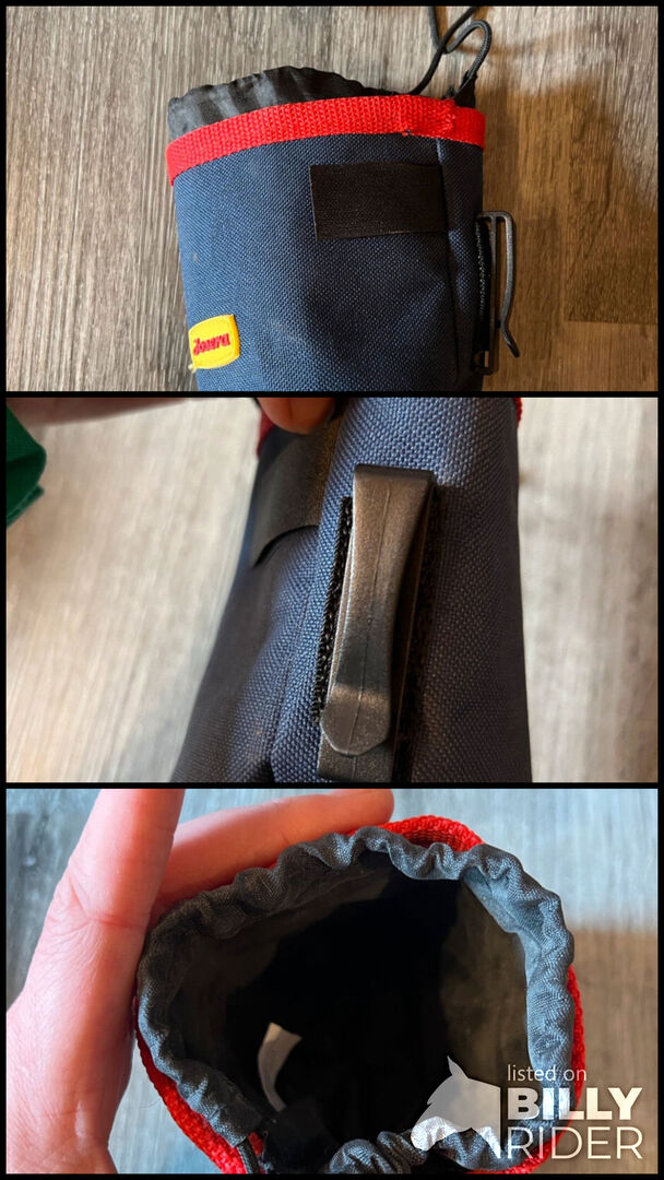 Josera godispåse - Jag säljer en godispåse från Josera, den kan enkelt fästas i midjebandet eller med kardborreband på ett bältesspänne. Det beror på hur du vill bära väskan. Du kan också stänga den upptill så att ingen nos kan komma in i påsen. Godispåsen har bara använts en gång, men jag föredrar att ha godiset i fickan. Fråga gärna om fraktpriset, jag kan också skicka den som ett försäkrat eller oförsäkrat paket.