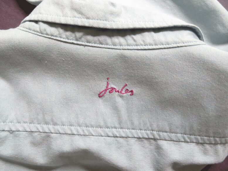 Joules Jeanshemd hellblau med Doggie gestickt Gr. M TOP - Nyvärdig Jeanshemd, från Joules, lätt svansad med Doggie in Brusthöhe gestickt. Färgen är i naturen en bit mörkare än på bilderna. Engl. Gr. 10, entspricht einer deutschen Grösse S, 36/38, wird locker getragen, passt auch gut bei Gr. 38/40 (habe selbst Gr. 38), siehe auch ca. Masse Weite von Achsel zu Achsel: 51cm Taille: 44cm Längd utan kragar: 65cm Neuwertiger Zustand, ohne Gebrauchsspuren. Abholung oder Versand