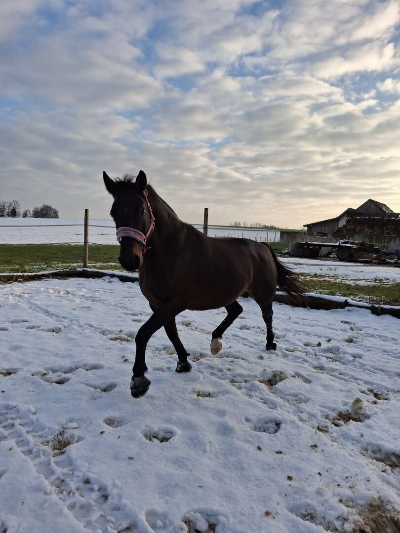 Kärleksfullt warmblodssto söker ett nytt hem för alltid - First Lady, med tilltalsnamnet Pepper, är ett 11-årigt typfullt varmblodssto. Tyvärr kan jag inte längre göra henne rättvisa tidsmässigt och söker därför ett nytt hem till henne. Pepper älskar att bli gosad och omhändertagen. Hon är mycket tillgiven och skulle vilja tränas regelbundet. Hennes favoritaktiviteter är markarbete och promenader. Pepper har naturligtvis också ridits, men ganska oregelbundet under det senaste året, så vi måste bygga upp henne långsamt igen. Hon är för närvarande skodd framtill och bor i ett öppet stall. Hon skulle vilja ha en liten flock på ett lugnt läge. Utrymme före pris! Inte en nybörjarhäst. Bra med hovslagare och lastning. Aktuellt blodvärde och hormonstatus tillgängligt, nyvaccinerad och skodd Ytterligare information via WhatsApp 00436603505346