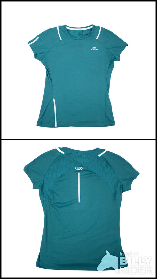 Kalenji Ladies funktionell skjorta Petrol 36 - Den här fantastiska funktionella skjortan från Kalenji är den perfekta vardagskamraten. Den petrolfärgade överdelen har vackra reflekterande detaljer så att du syns även i mörkret. Den har också nätinsatser för optimal ventilation. Tröjan från Decathlons eget märke är perfekt för alla sporter och naturligtvis för ridning. Skjortan är en storlek 36 och är som ny. To the seller's offerlaunch