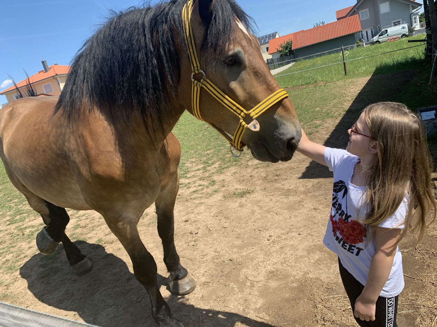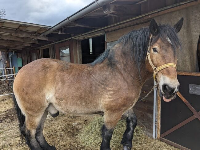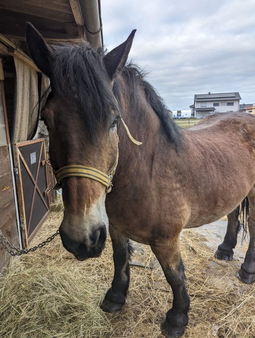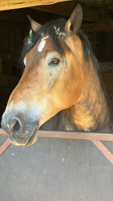 Kallblodig valack - Tyvärr måste vi göra oss av med vår gosiga pojke på grund av tidsbrist. Detta beslut är inte lätt för oss men eftersom vi inte har tillräckligt med tid för att hålla vår Aragon sysselsatt och vi tycker det är synd att han nu är ensam i sin box och i paddocken, eftersom vi var tvungna att söva vår tjej, letar vi efter ett nytt hem åt honom. Han är glad att bli lastad, är lätt att lyfta hovarna, skräms inte, kan markarbete, har ridits (tyvärr inte på nästan 2 år) och vet hur man backar trä. Vår yngsta kan gå under honom. Han älskar barn . Ändå kommer han inte att säljas som en nybörjarhäst helt enkelt på grund av sin storlek. Barfota, eksemfri, står i en stor box med daglig paddocktillgång, låg i rang, stod tillsammans med två ston i paddocken och boxen utan problem, hästpass tillgängligt, Aragons pälsfärg är betydligt ljusare på sommaren än på vintern, på sommaren har han vackra blommor i pälsen.