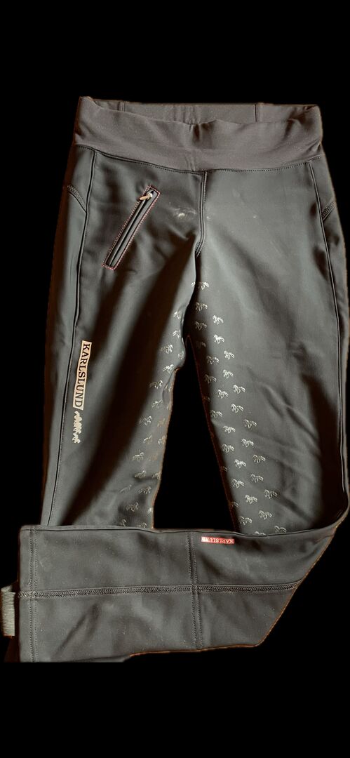 Dessa vinterridleggings är en storlek 36, jag köpte dem nya i december 2024 men har inte använt dem tre gånger.