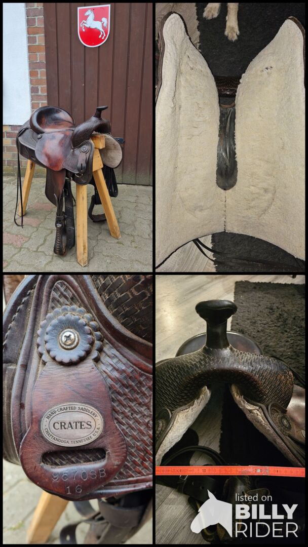 Kassar västerländsk sadel - Fortfarande tillgänglig: Jag säljer min begagnade Crates western-sadel eftersom den inte längre passar mina hästar. passar inte längre mina hästar. Självklart har den sina spår av användning men är i gott skick. I köpte den när min kallblodiga Hafi mix fortfarande var fortfarande var öm. Så den passar hästar som inte är helt runda hästar med vrist. Om du är intresserad/ frågor, skriv bara. Jag kommer att svara inom 24 timmar. Frakt möjligt. Prov möjligt (mot försäljningspris som deposition).