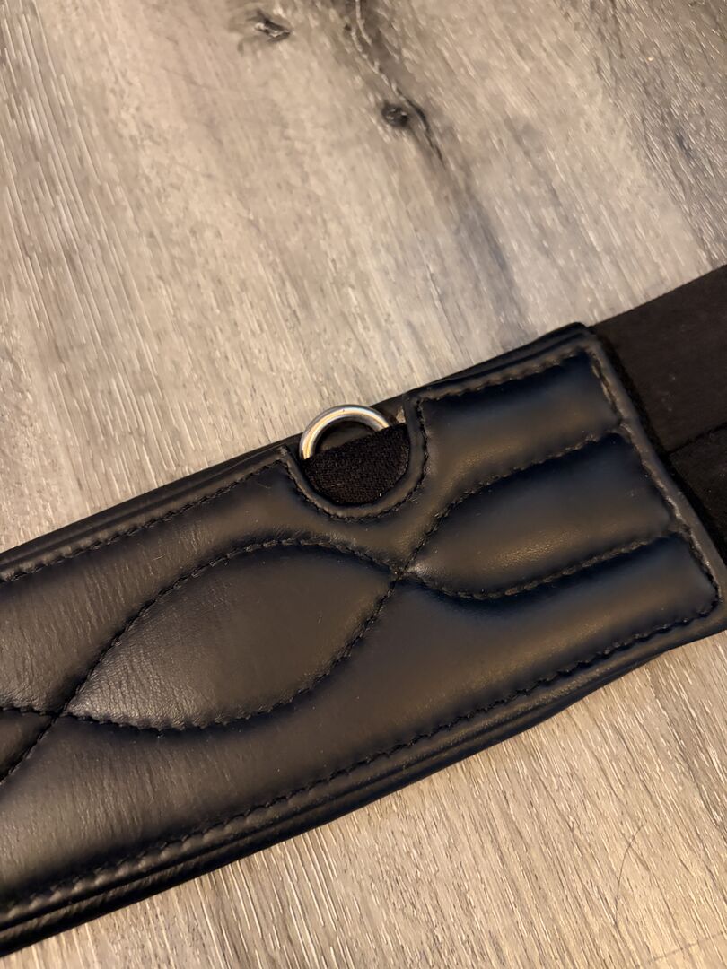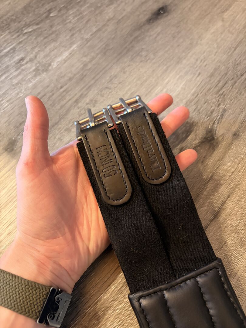 Kavalkade Långgjord Sadelgjord Comfort Mjuk 125 Läder - Till salu här en helt ny sadelgjord av märket Kavalkade. Det är modellen Soft Comfort Leather. Tyvärr är den lite för kort för min häst och därför måste jag ta av den igen. Sadelgjorden har en superfin anatomisk skärning och är också bekväm för hästen tack vare den breda bröstplattan. Min häst är annars superkänslig och gick mycket bra med den. Spännena är elastiska på båda sidor. De elastiska insatserna är inte utslitna utan sitter fortfarande bra och tätt. Sadelgjorden har också olika ringar och en karbinhake för att fästa olika hjälptyglar. Ringarna och karbinhaken har aldrig använts av mig och är därför helt rostfria och inte fläckiga. Karbinhaken löper smidigt.