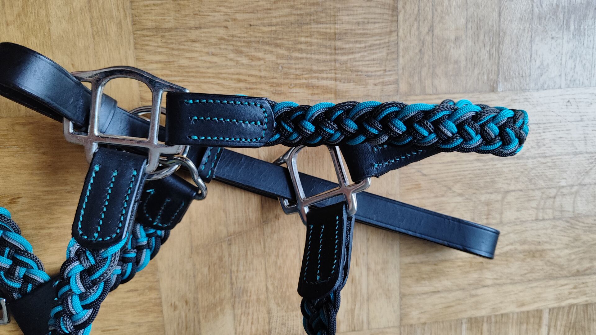 Kavalkade läderflätad grimma Tessa svart turkos WB - Ny med etikett