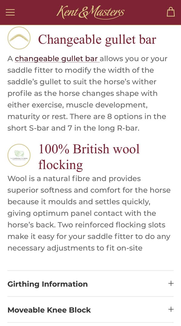 Kent & Masters Original Cob GP- Havana Brown 18inch seat- Used
