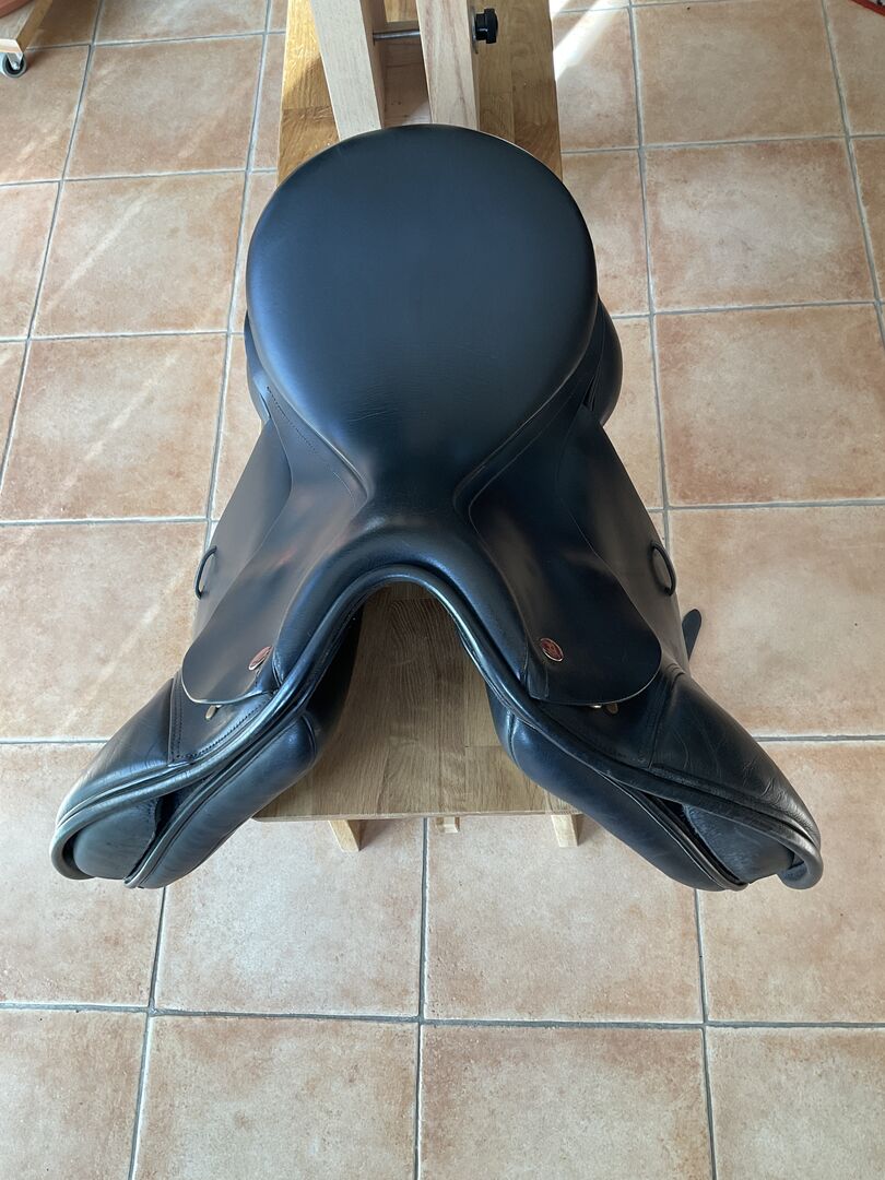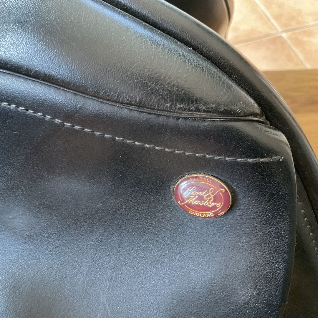 Kent & Masters DS Hög förtorkning - Begagnad Kent&Masters sadel, dressyr, hög manke i svart. 17 tum (ca 43 cm) sitsstorlek storlek 36- 42 medium djup.