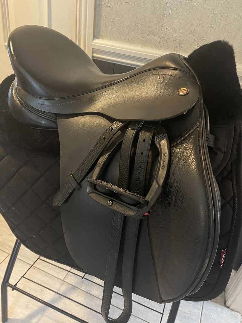 This saddle will suit you if you prefer to concentrate on flatwork, dressage and hacking instead of jumping. It has a generous seat for riders who like the feel of ‘more room’ in the seat, or if you are slightly wider in the hips. All Kent & Masters saddles share the features below. This S-Series Universal GPD benefits from superior craftsmanships and higher specification design details for a truly luxurious feel and appearance. It also features the following details: A straighter cut panel and longer flaps than the Universal GP, to accommodate the longer leg position required by dressage and flatwork. A generous panel with a good bearing surface, and wide channel for spine clearance. Full length, generous front gussets While this saddle has a standard-wither gullet depth, it offers a very universal fit for a variety of conformations. A wider, flatter seat, ideal for the fuller figure. Velcro knee and calf blocks under the flap which can be positioned to suit your leg length and position. Ghosted stitching on the knee pad helps it contour neatly around the block and ensures added comfort. Changeable girthing arrangement which allows saddle stability to be optimised instantly SADDLE ONLY, NOT THE STIRRUPS, PADS or LEATHERS