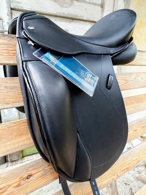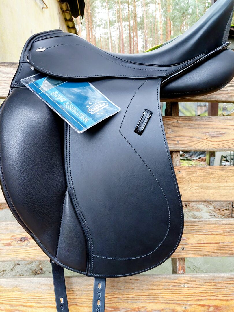 Specialtillverkad 17,5 Fit 3 justerbar, färg svart, ny Webflex träd, ulldyna. Garantikort tillgängligt, Bj2026 Oanvänd se foton. Ytterligare bilder kan göras med nöje Dressyrsadel med djupt säte och avkortad bakdel. Stora knäveck med anatomiskt förformad sadelklaff ger utmärkt stöd för ryttarens ben. Den breda ullpanelen ger möjlighet till individuell justering.