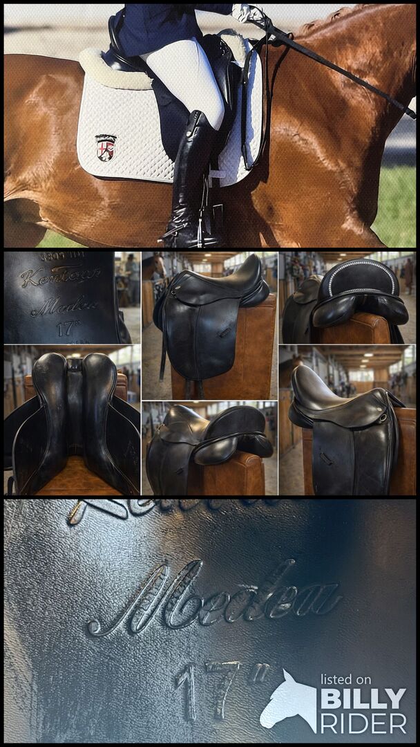 Kentaur Medea dressyrsadel 17" - KW 3 - begagnad - Till salu begagnad Kentaur Medea dressyrsadel. Uppgifter: - Sittmått: 17" - Kammerbredd: 3 (medium) - Färg: Svart - Serienummer: 3809 TDT - Djup sits, stora knäveck Sadeln är begagnad och uppvisar normala tecken på slitage/repor. Privat försäljning - ingen garanti eller retur.
