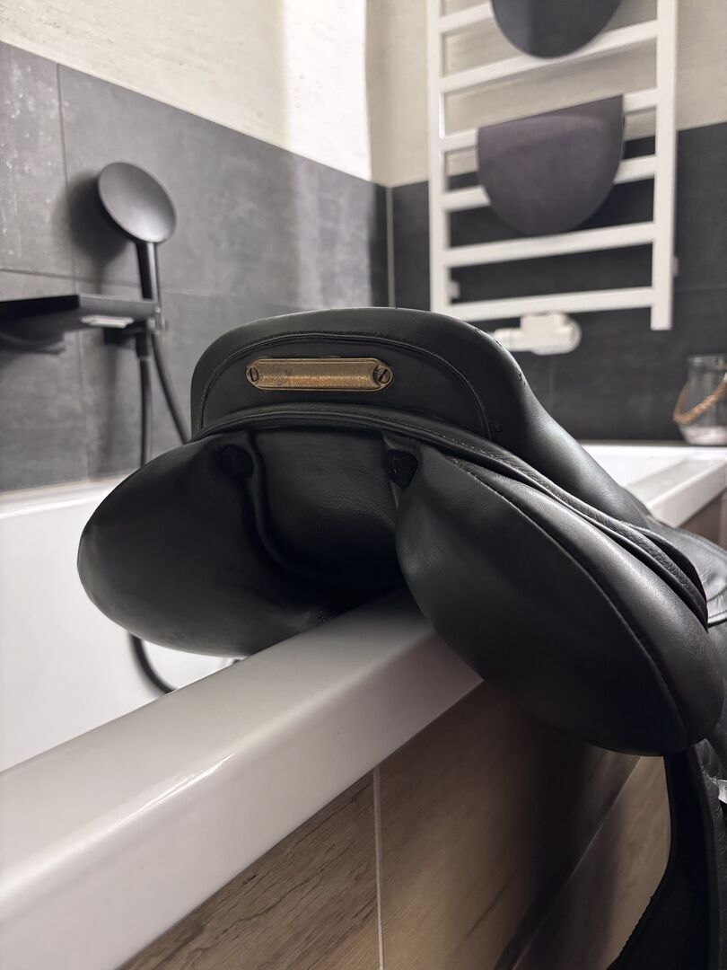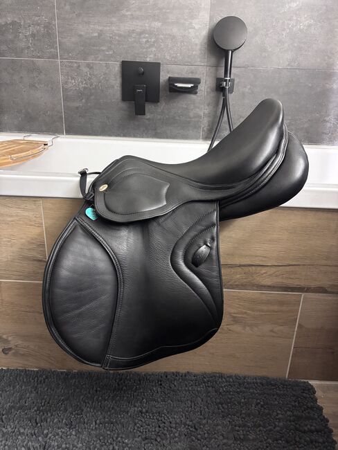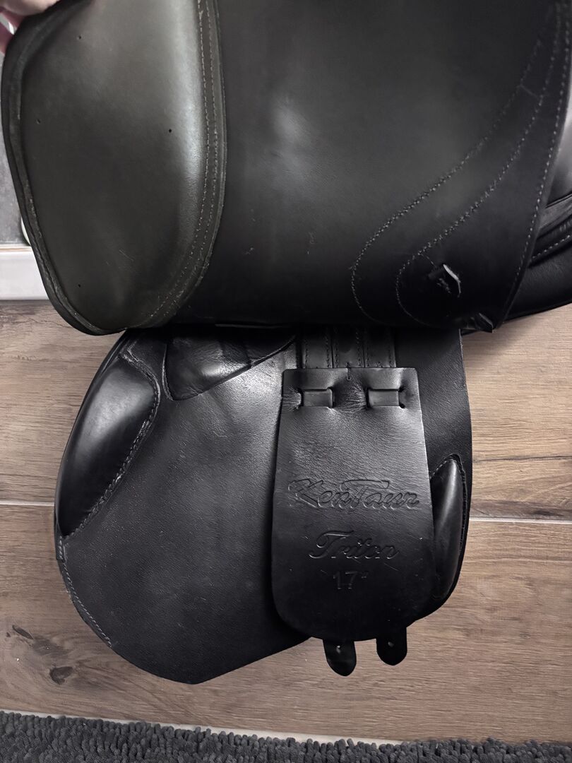Verkaufe gut erhaltenen Springsattel „Triton“ von Kentaur in schwarz 17 Zoll, Größe 3 (normale Kammer, vergleichsweise 33 bei Prestige). Es wurde noch nichts verändert, er ist im Originalzustand. Der Sattel ist super bequem, gibt viel Halt und macht ein schönes Bein. Verkaufe ihn nur, da mein junges Pferd sich leider zu sehr verändert hat und wir ihn nicht optimal passend bekommen.