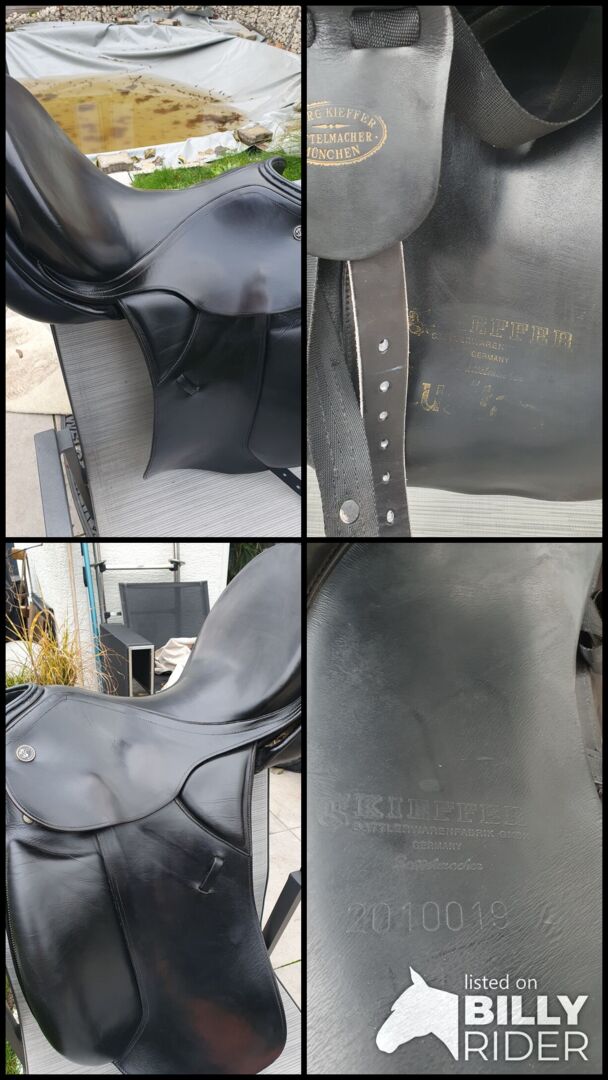 Kieffer Dressage Lusitano - Jag säljer en Kieffer-dressyrsadel Lusitano. Den blev nyligen vadderad i oktober och remmarna förnyades. Jag säljer den eftersom den inte passar min häst. Frakt möjlig.