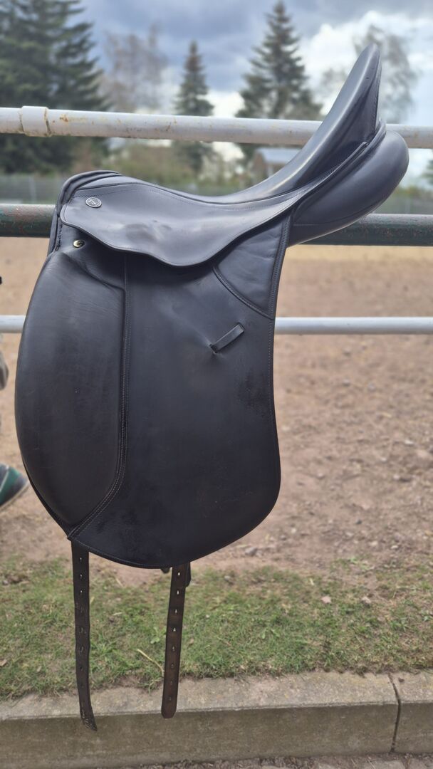 Kieffer dressyrsadel svart - Jag erbjuder en Kieffer Lusiano dressyrsadel i svart. Jag hade den alltid på min Westphalian (varmblod med mycket fullblodsinnehåll). Denna sadel är redan några år gammal men är fortfarande bra för nybörjare eller för att bryta in unga hästar. Här är några mätningar som jag fick sadelmakaren att ta:
