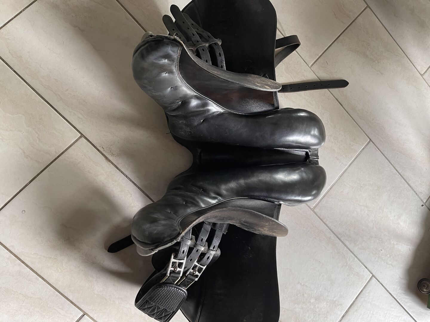 Kieffer Saddle 17 tum Mångsidighet - Hej, jag erbjuder dig en sadel för eventing i 17 tum, medium kammaren, den är äldre men väl underhållen, det finns också möjlighet att byta den. Sadeln satt nyligen fortfarande på vår stora ponny!