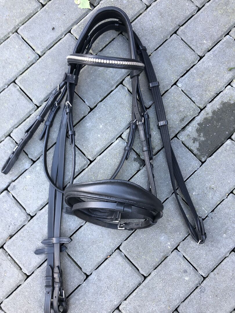 Kieffer Snaffle nästan ny! - Nästan ny träns i svart, WB från Kieffer. Halsstycke med 3 strängar och bra stoppning. Nya tyglar. Mjukt läder. Snaffle kan också hämtas i Heide eller Albersdorf.