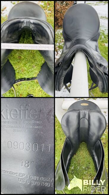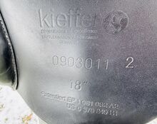 Sadeln är tillverkad av högkvalitativt svart läder och är perfekt för dressyrarbete: - Sittmått: 18 tum - Märke: Kieffer - känt för kvalitet inom ridsporten - Klassisk design i elegant svart - Ergonomisk form för optimal passform - Se bild för kammarens bredd (ca 32 mm kammare) - Lätta tecken på slitage på sitsen (se bild)