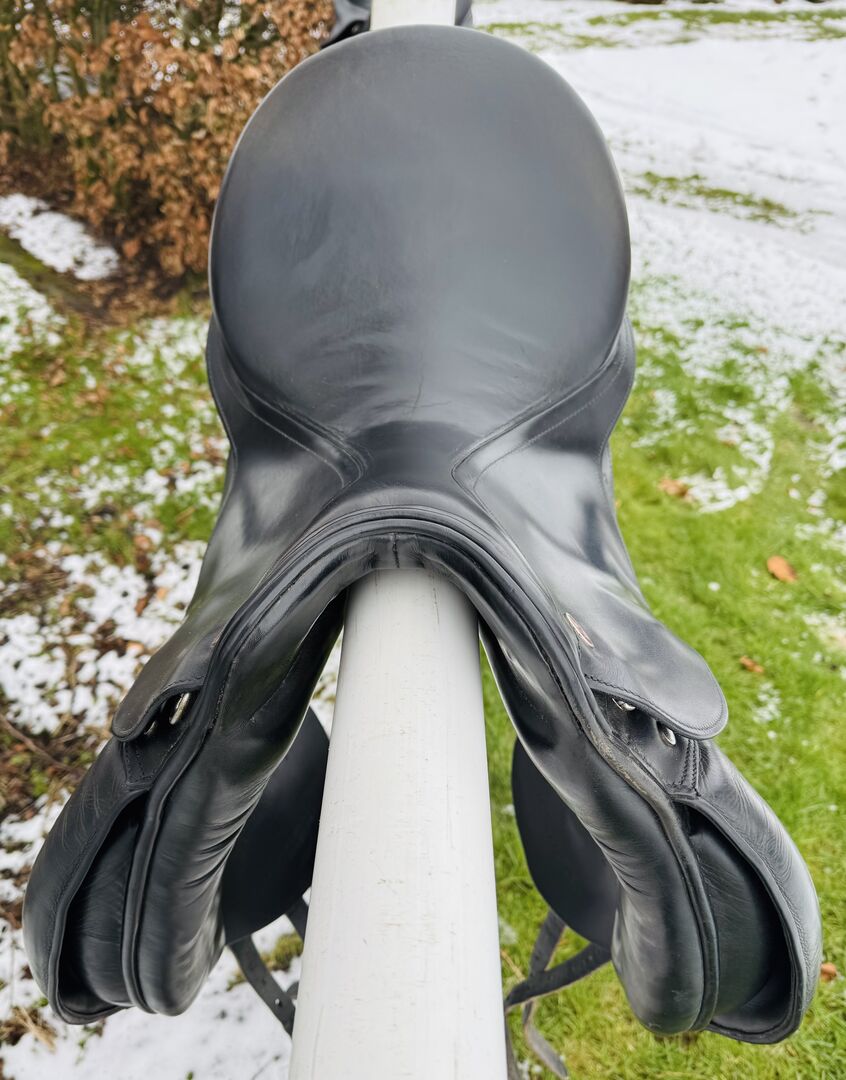Sadeln är i gott begagnat skick och har underhållits regelbundet. Den erbjuder dig nödvändig komfort och rätt stöd för ditt dressyrarbete.