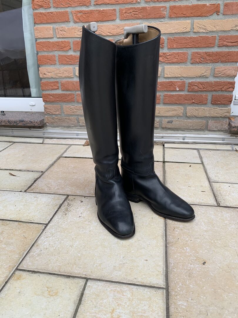 King ridstövlar - Mycket gott skick, eftersom den bara har burits några få gånger. Mycket välskött. Storlek 8 motsvarar 41,5. Höjd: 51cm Bredd: 38cm Kommer att levereras med lätt stövlarväska och stövelskaft i trä.