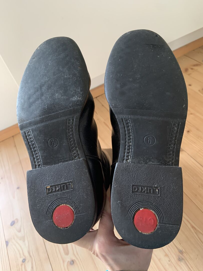 Klassiska ridstövlar i läder från Cavallo - Slitna ridstövlar som har några repor men är redo för nya äventyr. De kan behöva lösas upp, men det kommer att ta lite tid. Den högra stöveln saknar emblemet.