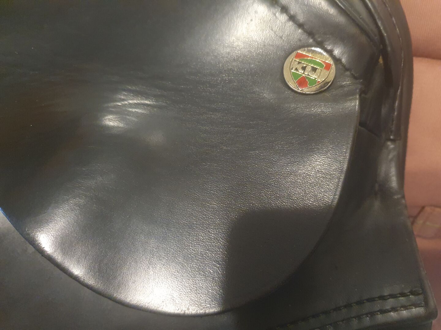 De korta sadelklaffarna är i gott skick, liksom stigbygelstängerna. Sadeln var förmodligen återsvartad innan den kom till mig. Jag skulle rekommendera att göra om stoppningen, men det är upp till var och en att bestämma. Det finns en buckla i baksidan av varje panel, kanske något som tryckts in i dem under lagring. Den har krusningar i sittområdet, lädernötning på panelerna och längs rörsömmarna samt mindre repor. Jag har redan fått sadeln som den är. Den kommer att säljas utan tillbehör.