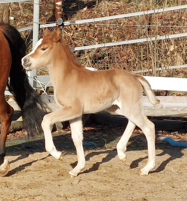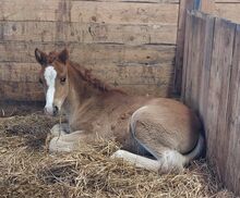 Knabstrupper ponnystövarföl - WüPie's LILLIFEE - född 07.02.2026 - är registrerad hos ZfdP som Knabstrupper(ponny) - enfärgad kastanj - stabil modell, ett mycket självsäkert sto med mycket charm och humor - välproportionerad med 3 välreglerade gångarter, kraftfull och rörelseglad, med en elastisk grundrörelse som inte lämnar något övrigt att önska, (kan flytta ut efter avvänjning i augusti/september).