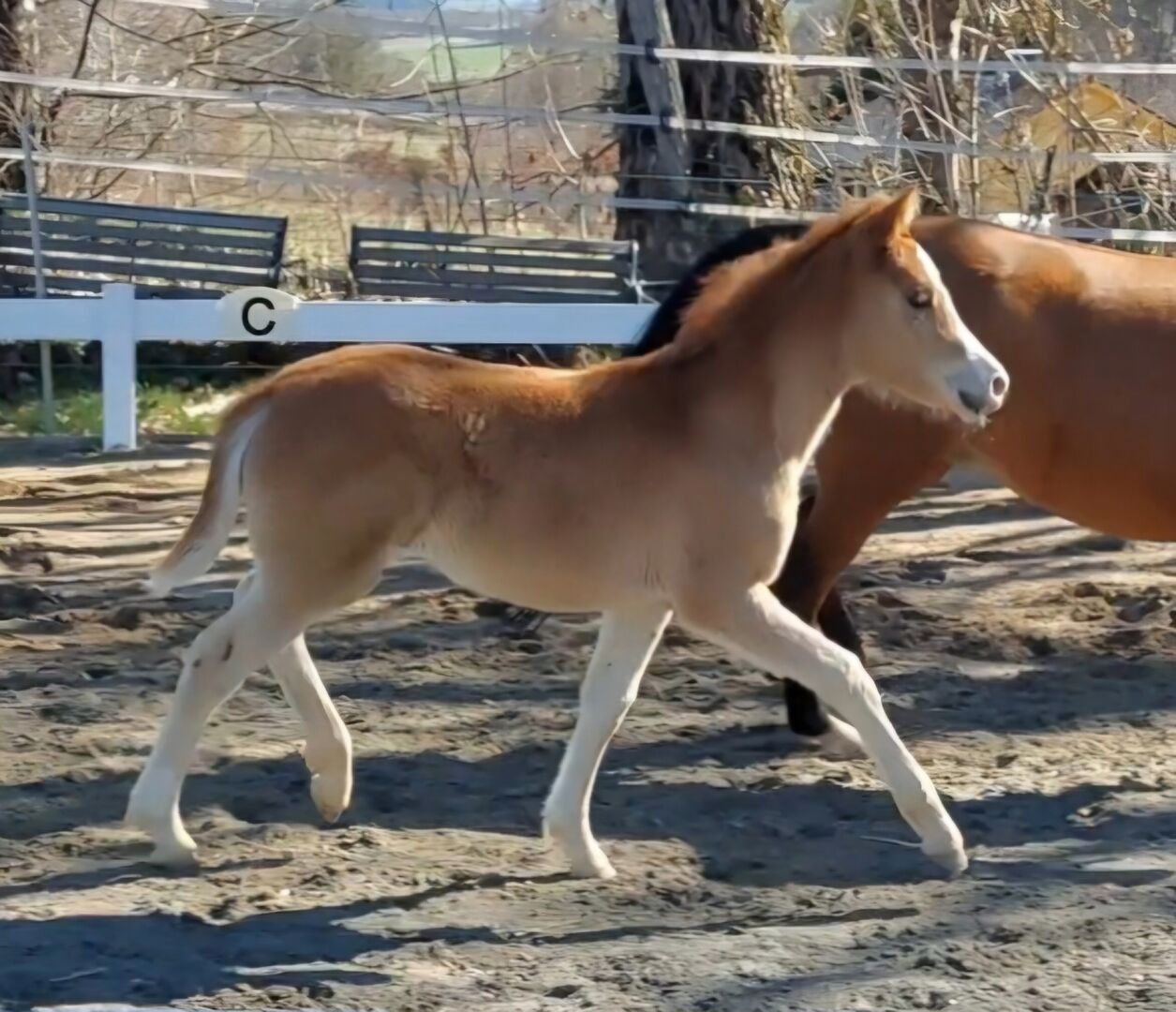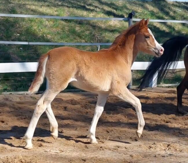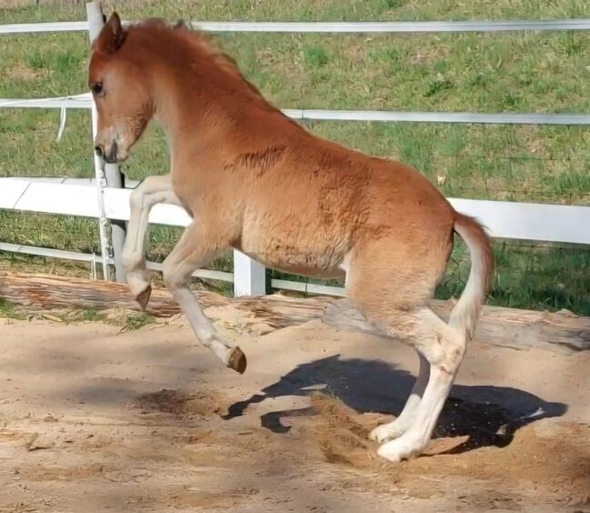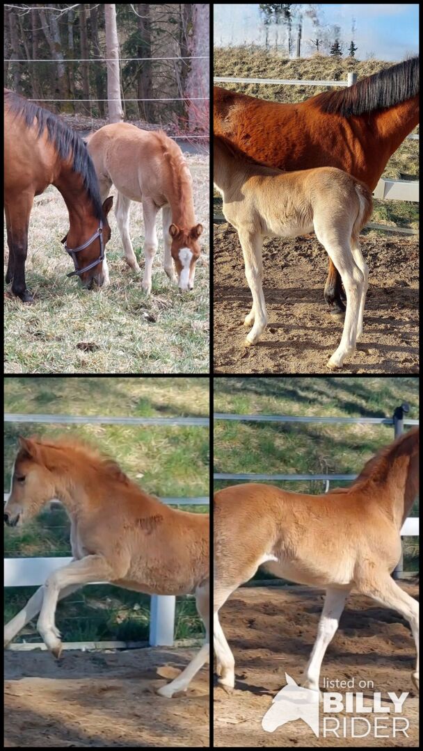 Vår LILLIFEE, övertygar omedelbart med sin fräcka och nyfikna natur och den matchande älskvärda karaktären. Hon är en stabil typ med mycket go, som man kan föreställa sig senare också bra framför vagnen, i det exklusiva fritidsområdet eller mindre sportområdet. Hon har ett underbart fint ansikte och håller alltid huvudet kallt, oavsett vilken ny situation som uppstår. Hon imponerar med sin nyfikenhet, i kombination med rätt temperament, sitt uppträdande och sin närvaro, men framför allt med sin vänliga och ärliga natur när hon hälsar på dig med ett glatt neigh och ser fram emot sina träningspass. Hon är helt människoorienterad och växer upp hos oss med en familjekoppling, helt söt och älskar att bli ompysslad. Det finns inga problem alls med att lyfta hovar, skrapa ut dem eller till och med med hovslagaren. Hon är nu bekant med grimmor och kommer naturligtvis att vara lätt att leda tills hon lämnas in. Hon får också flera mineraler/vitaminer som föl behöver och är avmaskad.