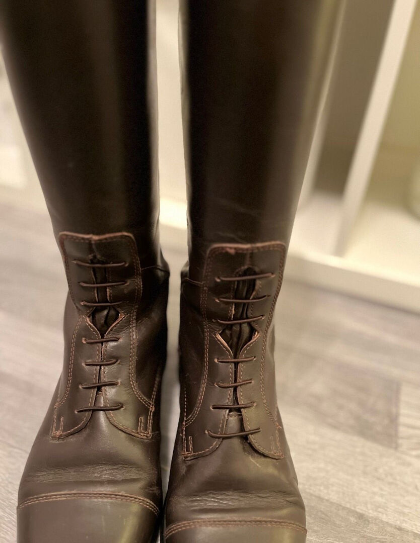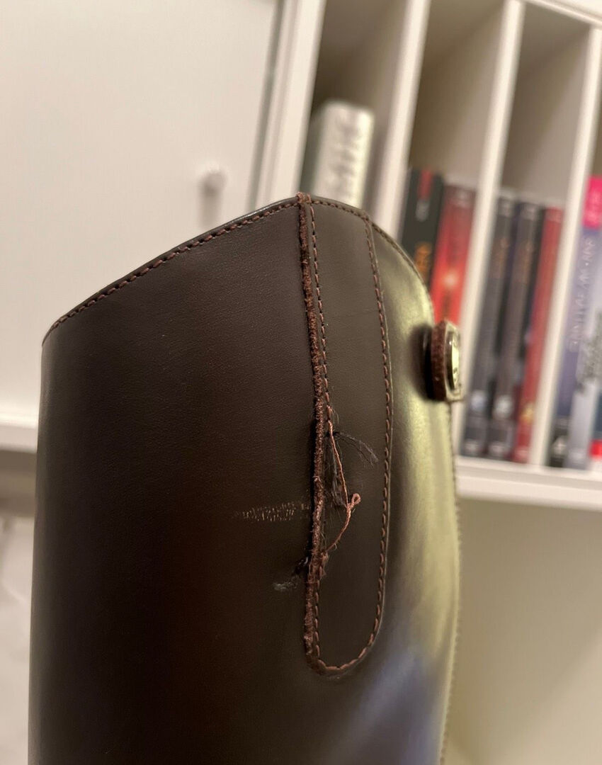 Ich verkaufe meine selten genutzten Steeds Reitstiefel (Reitstiefel Favourite III) der Größe 38 in Slim und der Farbe Braun. Am linken Stiefel ist die Naht ein wenig aufgerissen, ansonsten befinden sich die Stiefel in einem guten Zustand. Ebenso verkaufe ich meinen kaum getragenen Knightsbridge Reithelm (Reithelm Glory) der Größe M, ebenfalls der Farbe Braun. Der Helm ist sturzfrei und befindet sich in einem sehr guten Zustand.