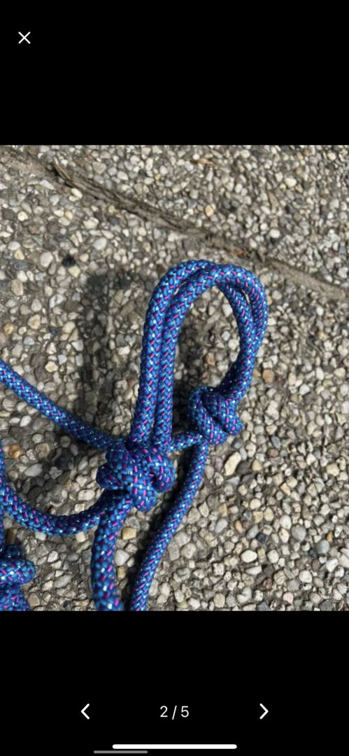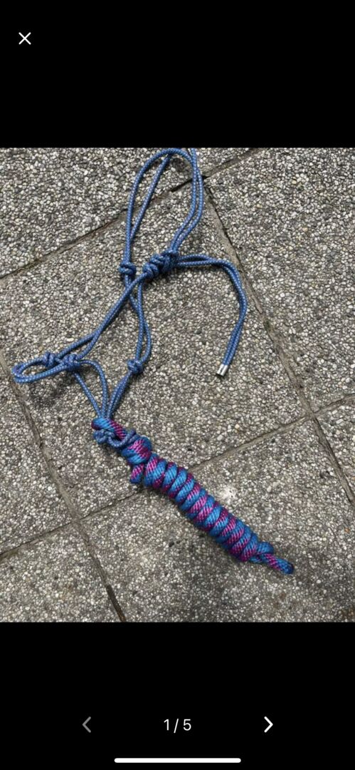 Knot halter set - Vacker och högkvalitativ knutgrimma (med tillhörande rep) till salu! Blå/lila med glitter