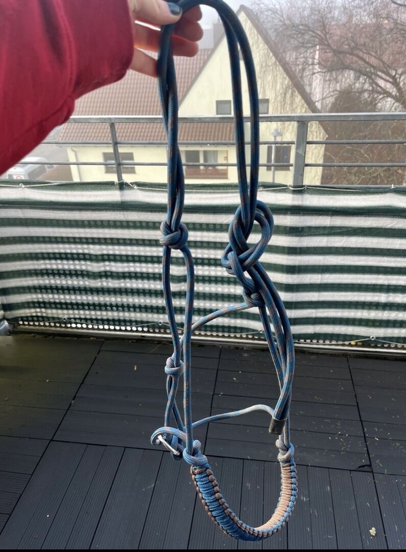 Knotenhalfter blå, WB - Jag köpte min Knotenhalfter i blau/ braun mit Ring. Jag köpte den sommaren 2025 och den är i mycket gott skick.