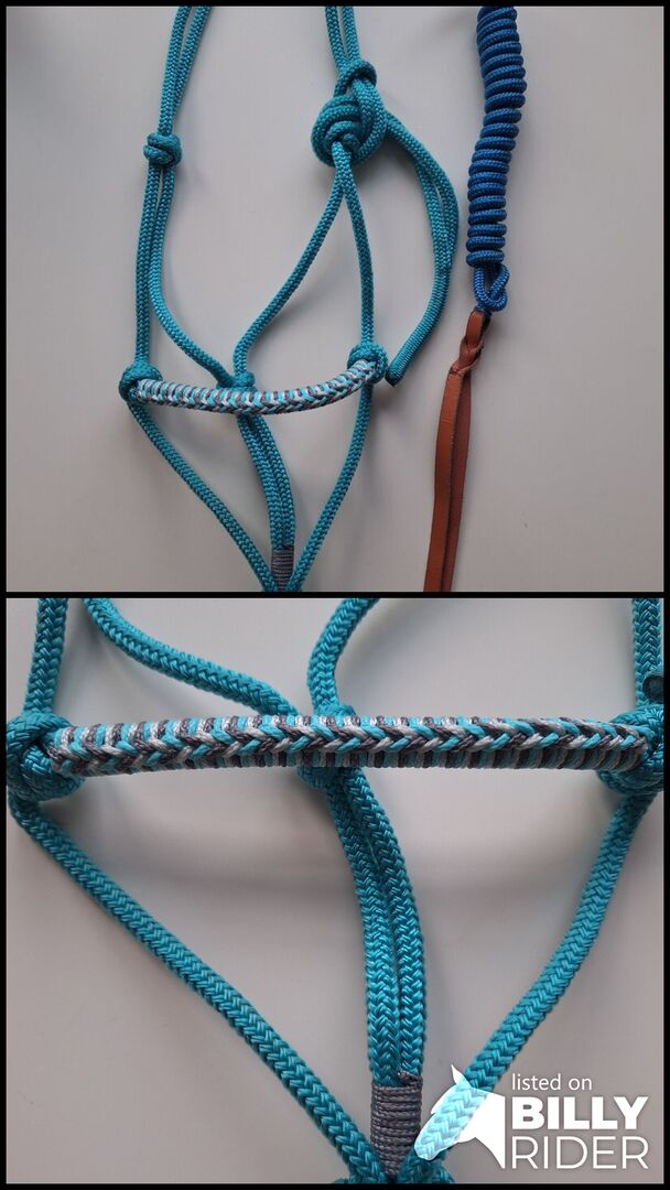 Knuten halter minishetty - Knuten grimma från procavallo i turkos, storlek föl/mini. Rep från Krämer (STONEDEEK Horsemanship-rep) i blått och har en längd på 2m.