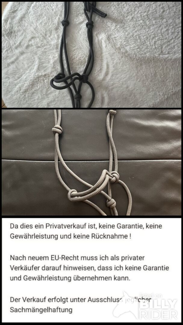 Knutet halsband - Jag erbjuder en knuten grimma som bara har varit på hästen en gång. Tyvärr för stor. Grå och i helt nyskick.