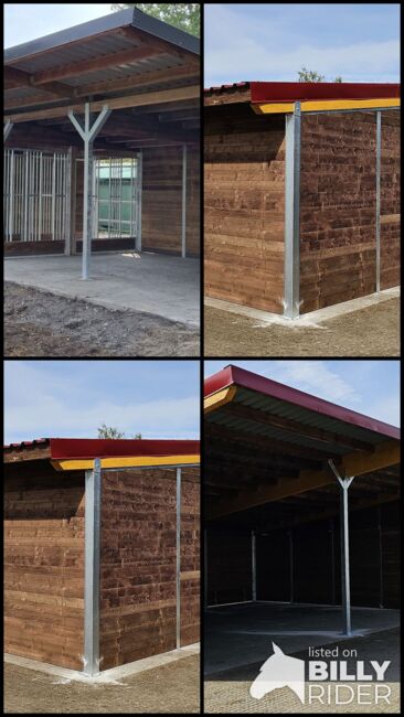 Fördelar med våra hästunderstånd: Mycket stabil stål-holz-konstruktion Hög viktbärande kapacitet med vind och elasticitet Snabb montering utan fundament Modulärt och individuellt planeringsbart Individuell planering beroende på storlek