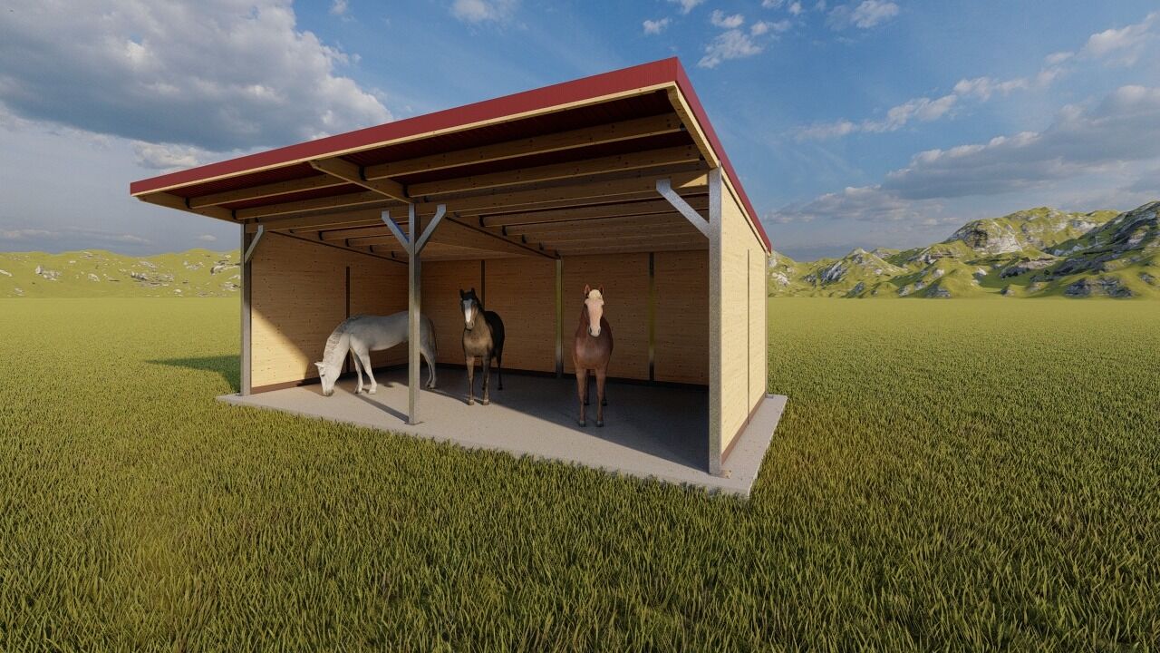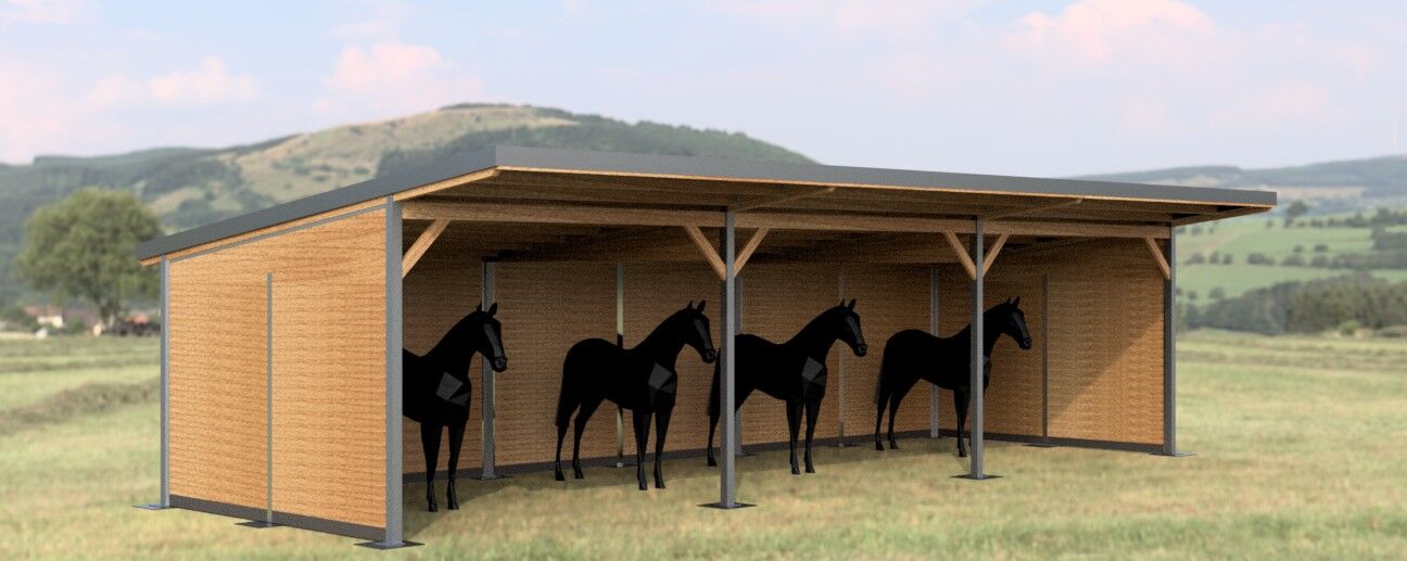 Köp en öppen stall | Hästskydd & hästhage - Offenställe & Weidehütten für Pferde - ohne Fundamenten | robuste & wetterfeste Lösungen