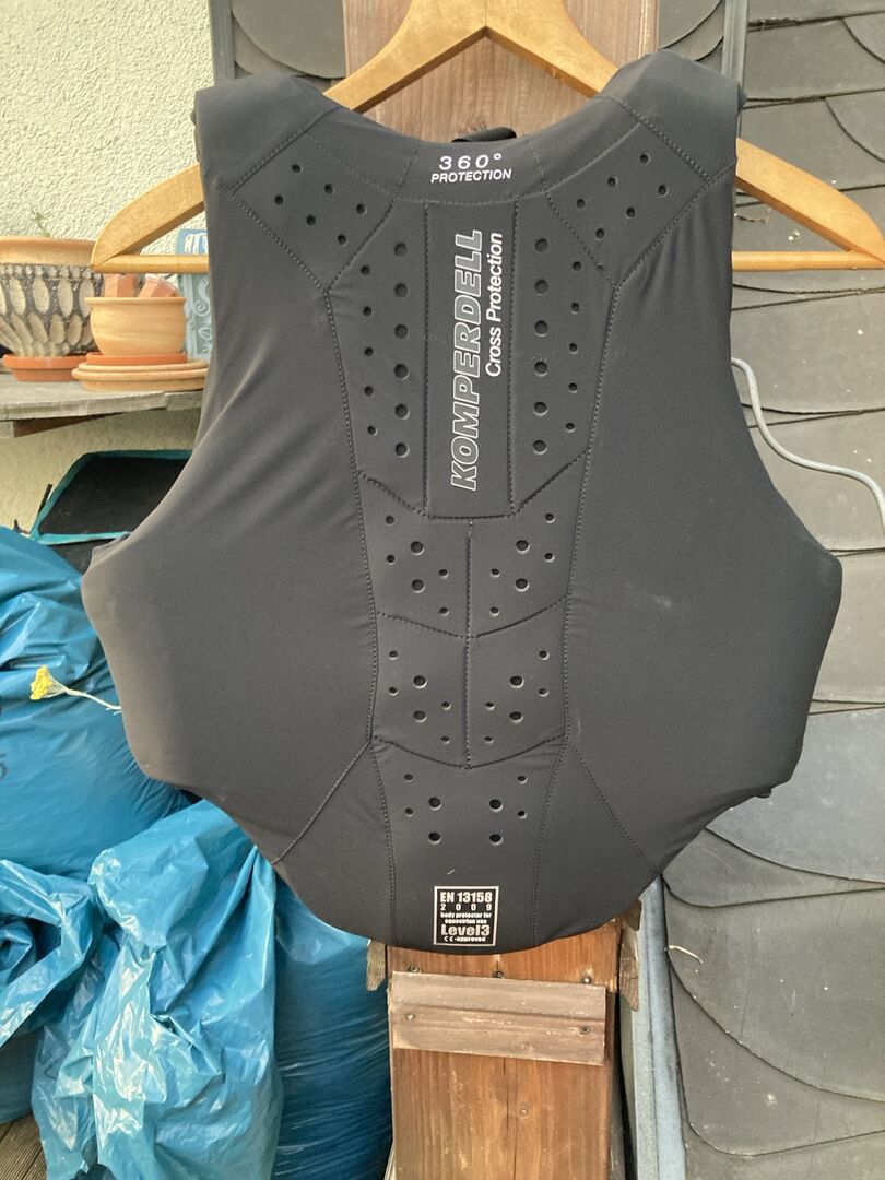 Komperdell 360 säkerhetsväst - Säkerhetsväst från Komperdell Level 3 Används väldigt lite, alltid förvarad inomhus, aldrig ramlat på den (toitoitoi), nu behöver vi den inte längre eftersom vi har slutat rida.