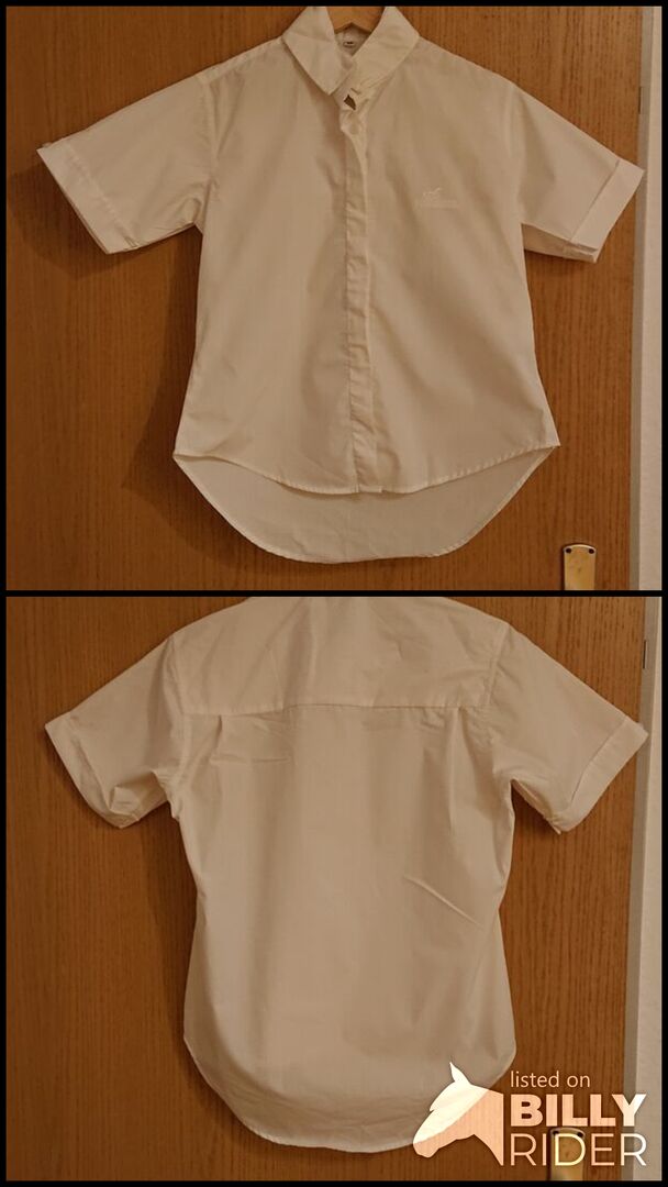 Kortärmad tävlingsblus för damer, storlek 36, använd en gång - Till salu vit showblus från Hawthorne, endast buren en gång för ett ridtest, perfekt skick.