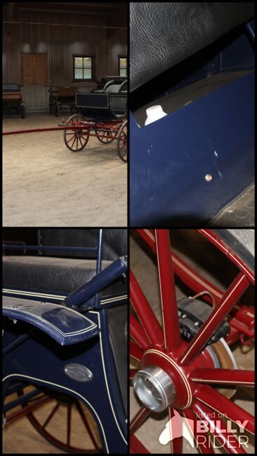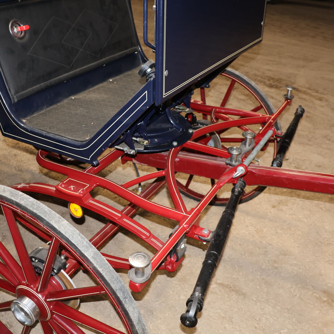 Varumärke: Kühnle Typ av vagn: Spider Typ av vagn: Enkel/twin vagn Hästtyp: Stora hästar Skick: Mycket bra skick (lack i mycket bra skick, klädsel i mycket bra skick) Redo att köra: Ja, ekipaget är fullt trafikdugligt och går att köra utan problem Färg: Mörkblå med röda accenter Omfattning av leverans: Se bilder