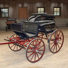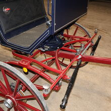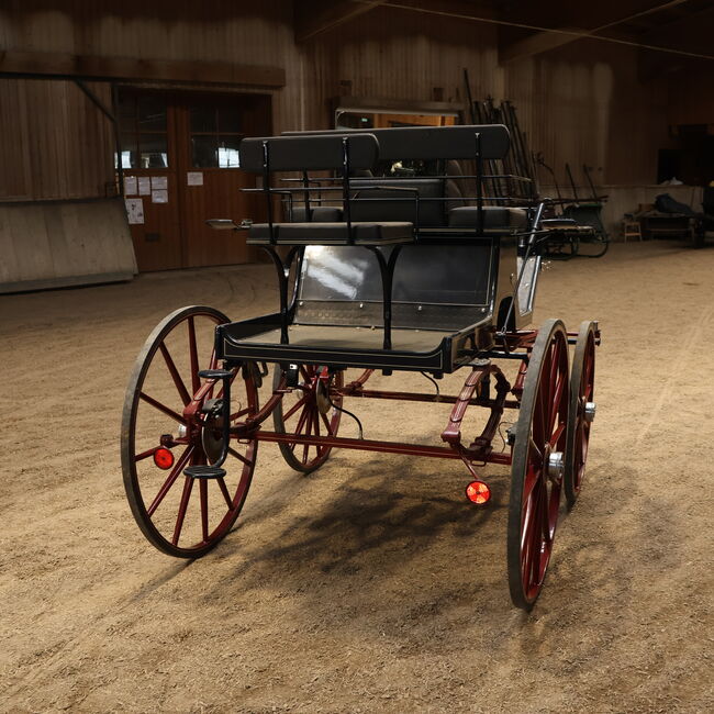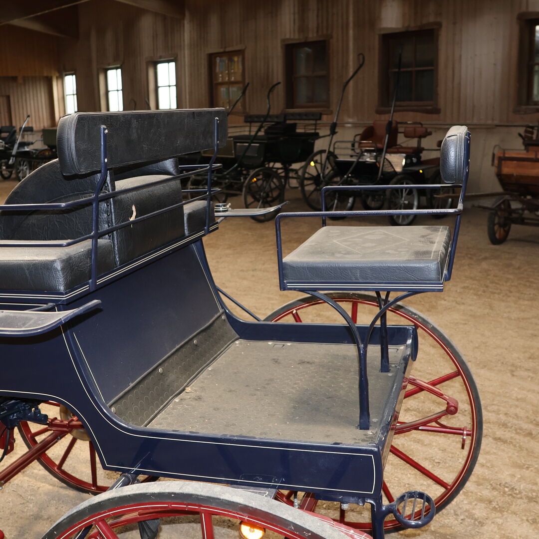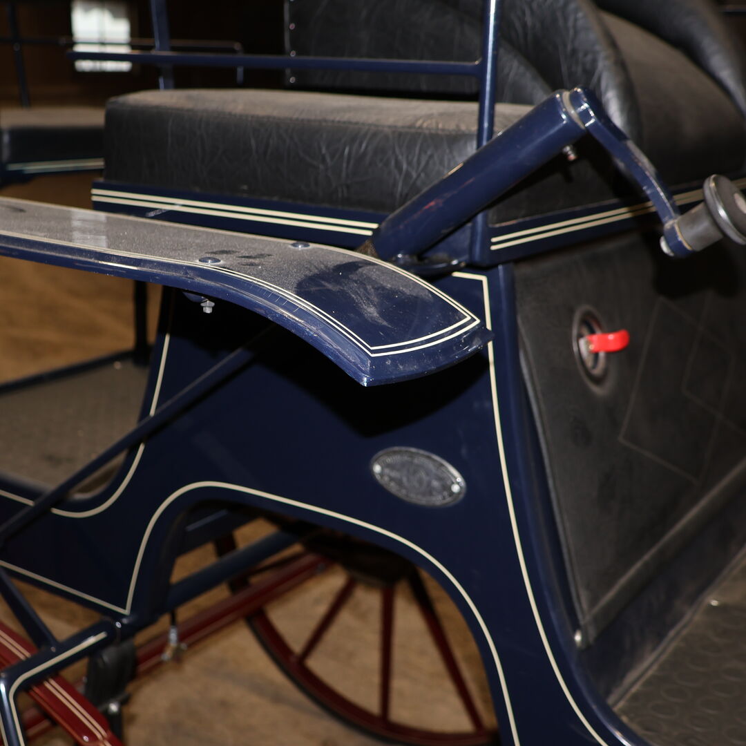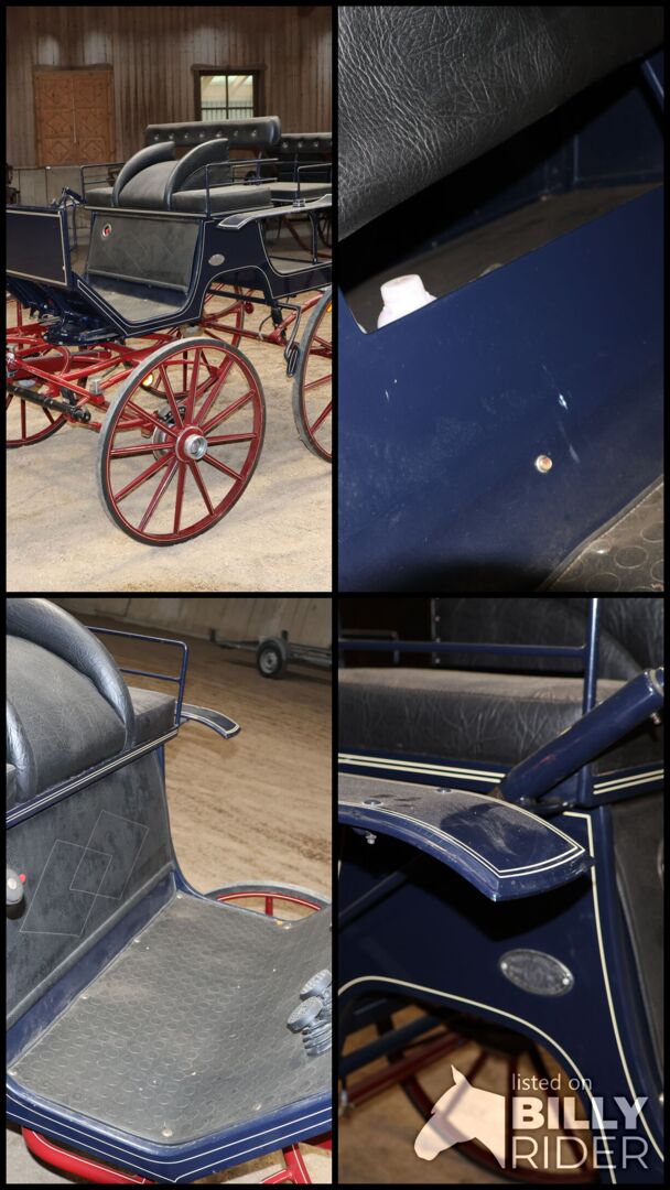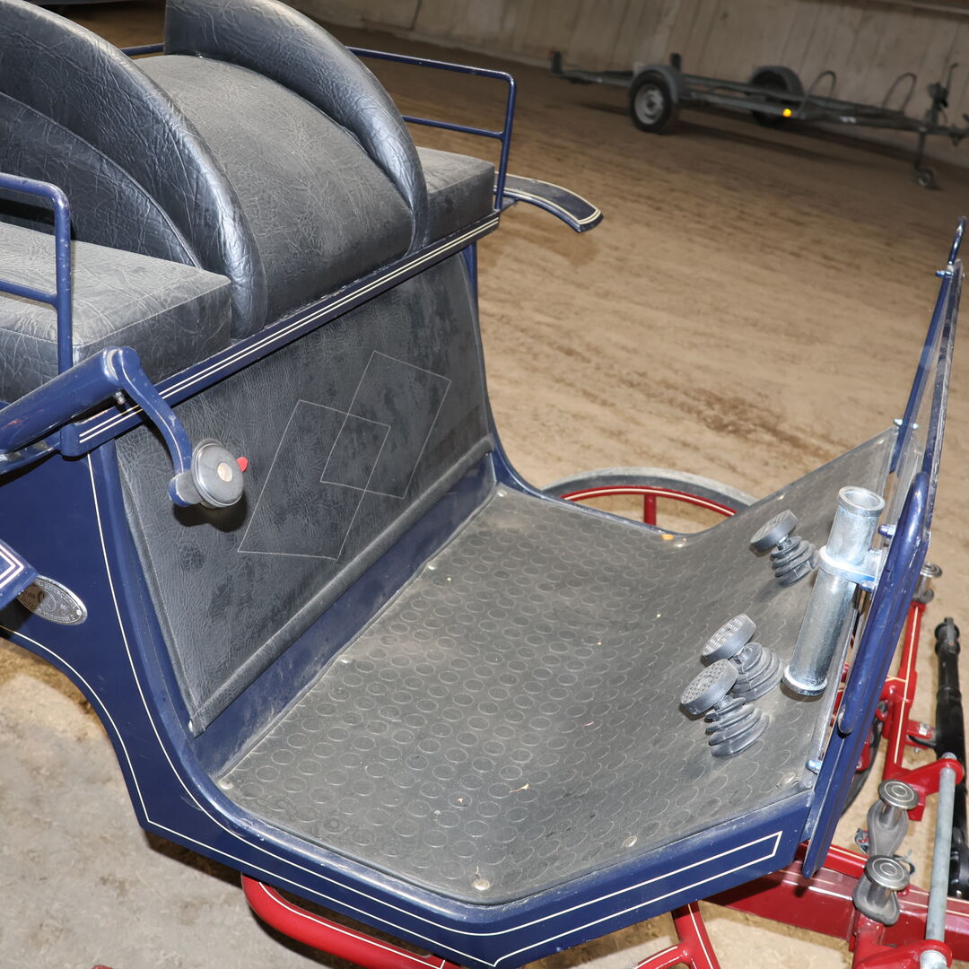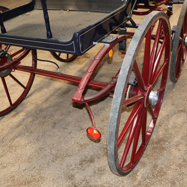 Varumärke: Kühnle Typ av vagn: Spider Typ av vagn: Enkel/twin vagn Hästtyp: Stora hästar Spårvidd (hjulets ytterkant till hjulets ytterkant): 152 cm Hjuldiameter: 90 cm fram / 110 cm bak Bockhöjd (överkant klädsel förarsäte): 155cm Skick: Mycket bra skick (lack i mycket bra skick, klädsel i mycket bra skick) Redo att köra: Ja, vagnen är fullt trafiksäker och körs utan problem Färg: Mörkblå med röda accenter Omfattning av leveransen: Se bilder