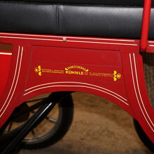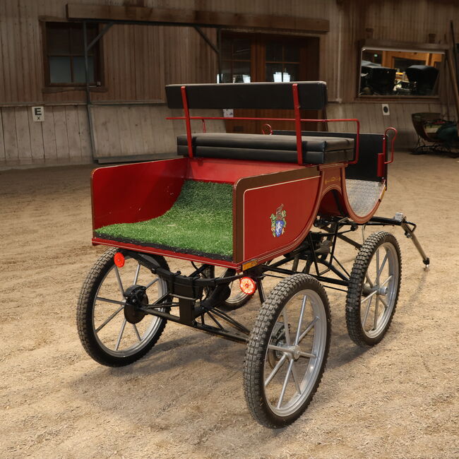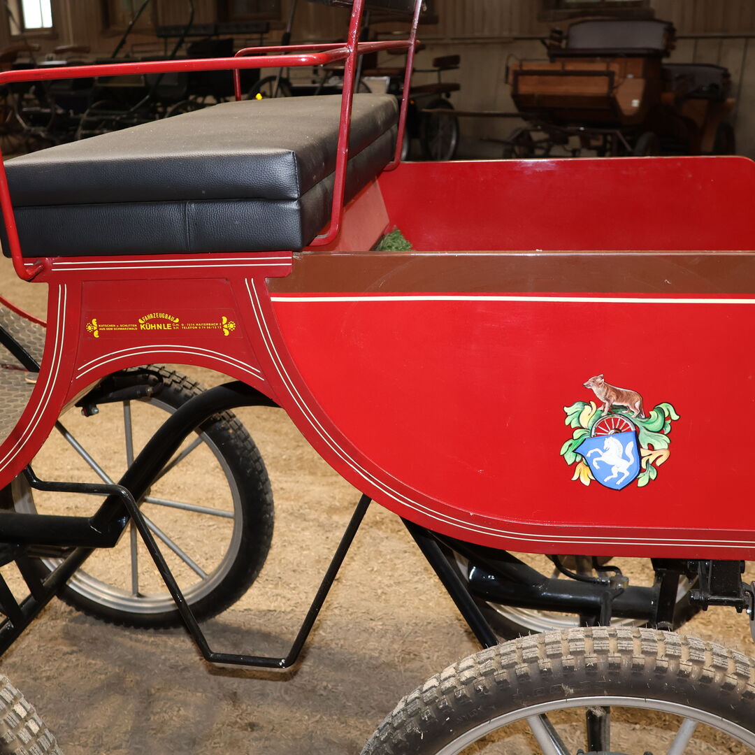 Varumärke: Kühnle Typ av vagn: Spider Light Typ av vagn: Enkel vagn Hästtyp: Haflinger / Ponny Skick: Mycket bra skick (lack i mycket bra skick, klädsel i mycket bra skick) Redo att köra: Ja, ekipaget är fullt trafikdugligt och körs utan problem Färg: Röd med svarta/vita/gyllene accenter (+ lackering) Omfattning av leveransen: Se bilder