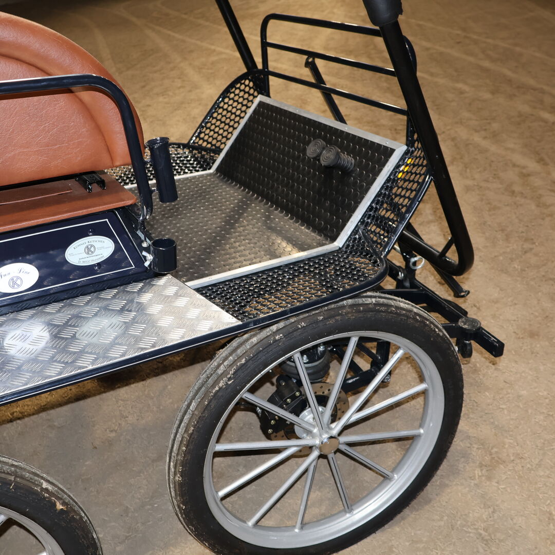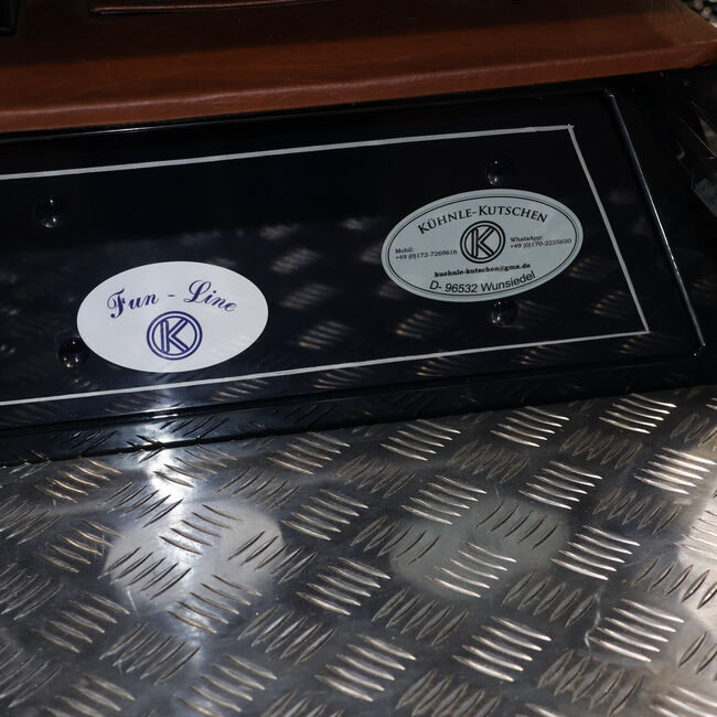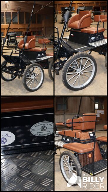 Varumärke: Kühnle Vagntyp: Tävlingsvagn Vagntyp: Enkel/dubbel vagn Skick: Nyskick (lacken i nyskick, klädseln i nyskick) Redo att köra: Ja, ekipaget är fullt trafikdugligt och körs utan problem Färg: Mörkblå med vita accenter Omfattning av leverans: Se bilder