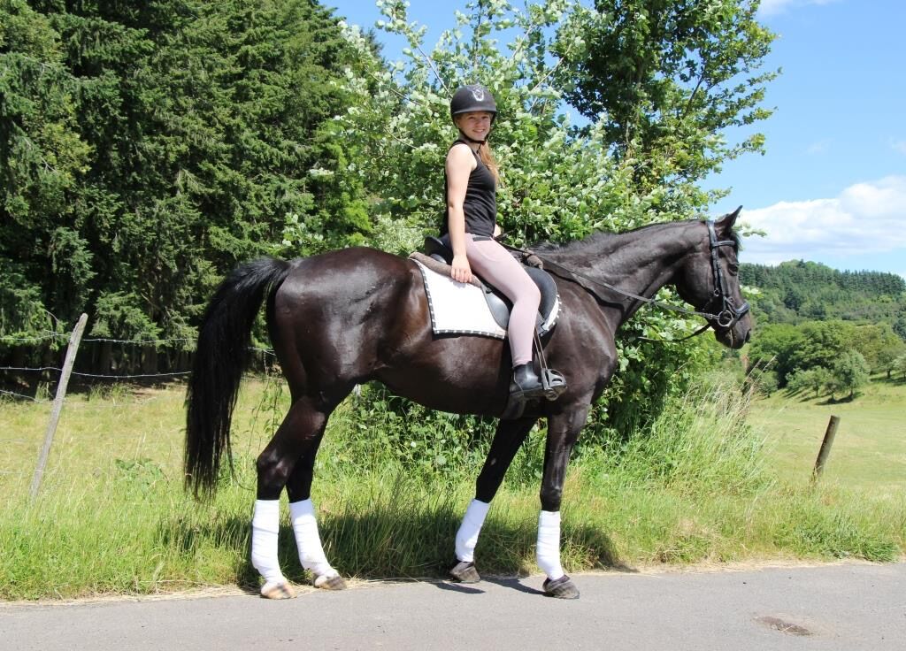 Vår stora valack visar utmärkta, livliga och marktäckande gångarter, är utbildad upp till medeldressyrnivå, går längdåkning utan problem och är alltid angelägen om att uppträda i arenan. Oavsett om han är ensam, i grupp, med erfarna människor eller oerfarna hästar, är han alltid väluppfostrad, villig och visar alltid sin bästa sida, så att varje tur med honom är en dröm! Han är entusiastisk över alla äventyr, oavsett om det gäller ridlektioner i manegen, orientering eller terrängridning, barnkalas, ridlektioner eller helt enkelt lugna ridturer.