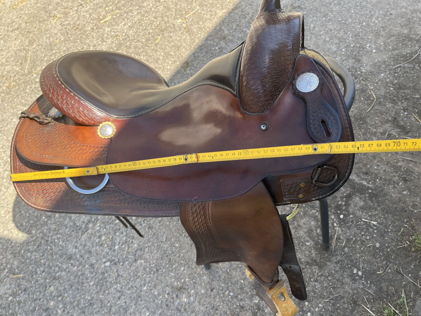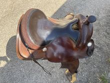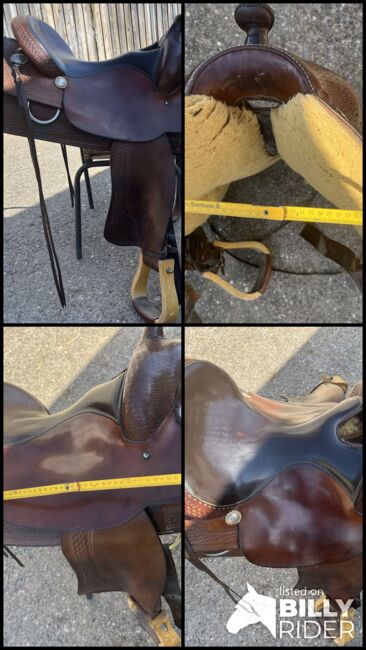 Lådor Westersattel - Tyvärr säljer jag min högkvalitativa Crates westernsadel i mörkbrunt läder eftersom den inte längre passar min unga häst. Sadeln imponerar med sitt gedigna utförande och sin bekväma, djupa sits. Den var tidigare monterad på en quarter