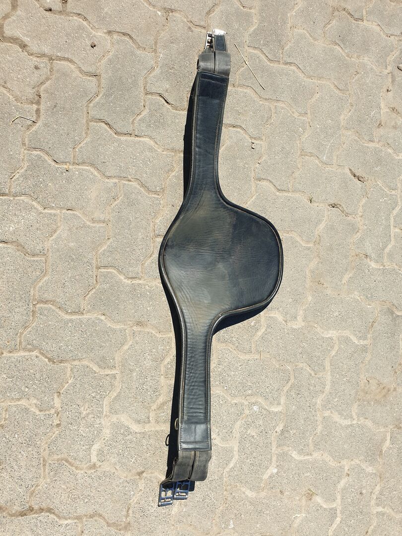 Läder med dubbade kardborrar Prestige 135 cm - Till salu är en lädergrimma från Prestige i 135 cm längd med resår på båda sidor. 2 av de yttre elastiska banden är skadade, de som sitter på hästen är helt intakta. Grimman visar tecken på användning som kan ses på bilderna.