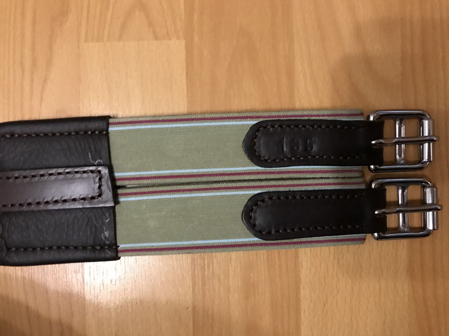 Läder Saddle Girth brun 135 cm ny - Läder sadelgjord, brun, längd 135 cm, elastisk på ena sidan, smalaste punkt 6 cm, bredaste punkt 9 cm, ny, frakt med DHL på € 3.79
